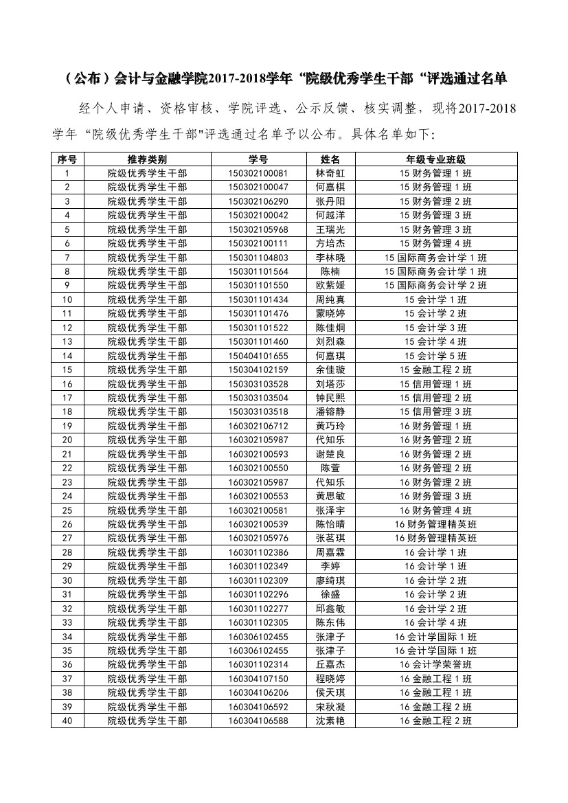 (公布)2017-2018学年“院级优秀员工干部”评选通过名单