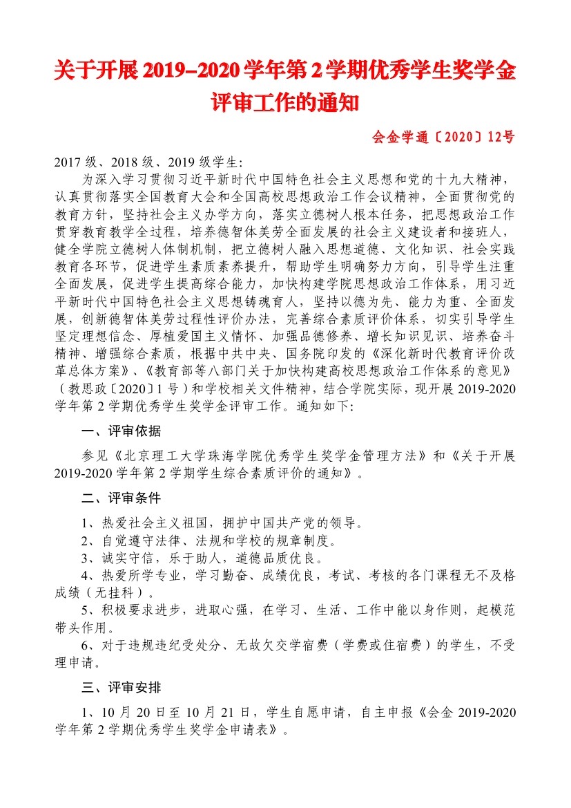 关于开展2019一2020学年第2学期优秀员工奖学金评审工作的通知