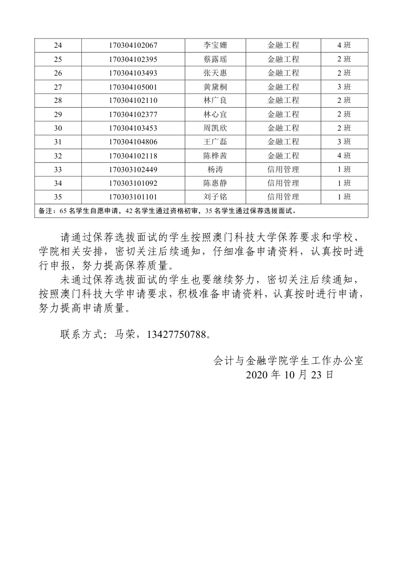 (公示)通过2021一2022学年澳门科技大学硕士学位课程保荐生选拔面试名单