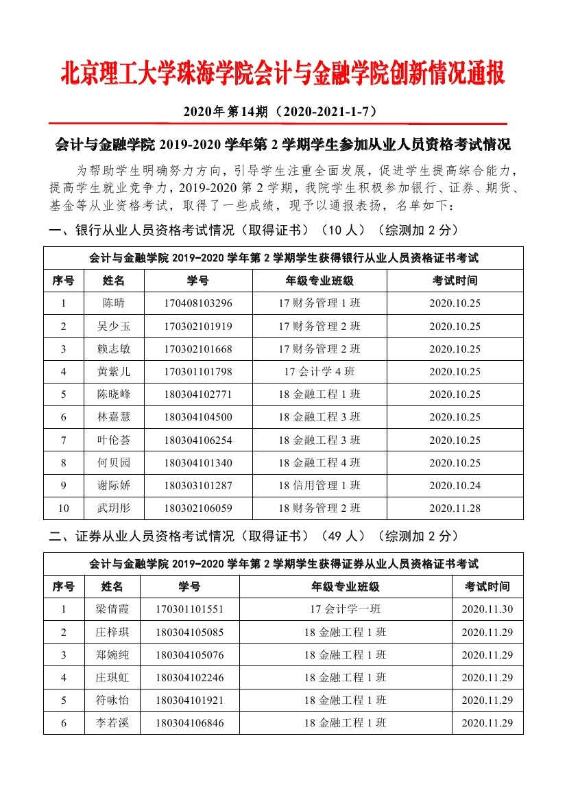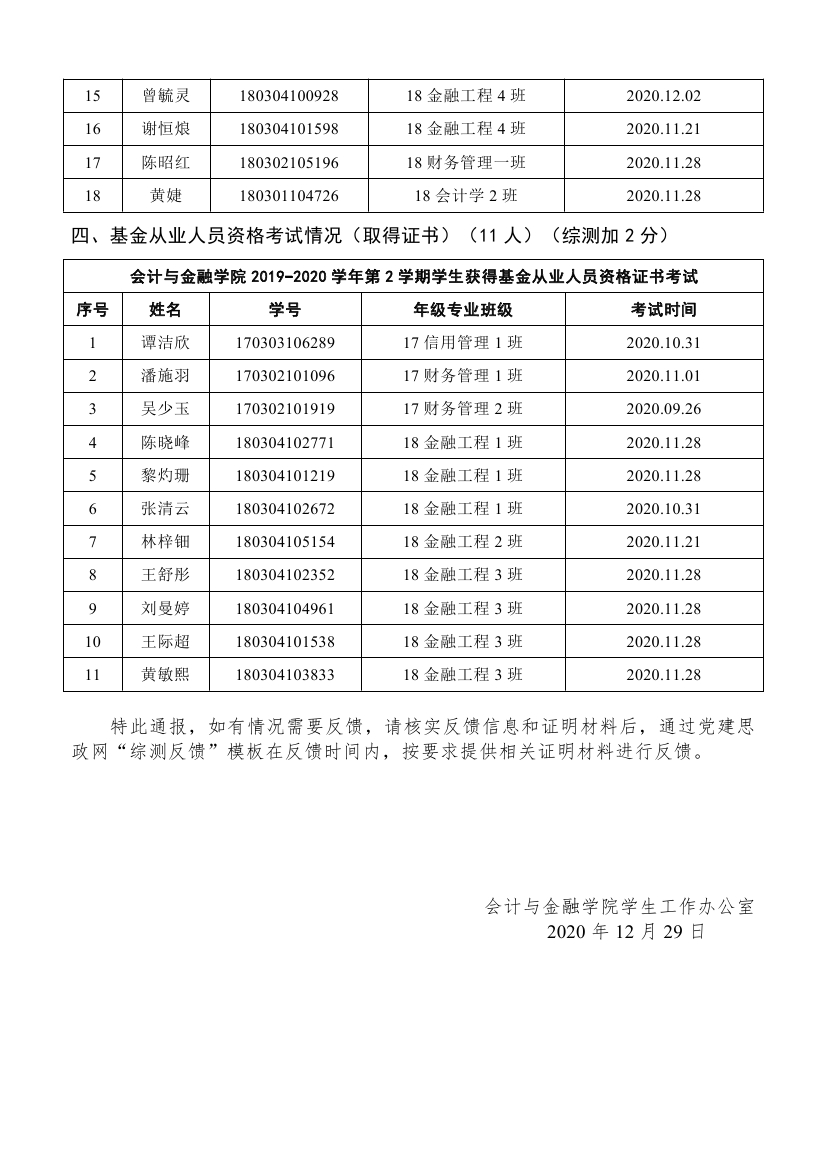 2019-2020学年第2学期员工参加从业人员资格考试情况