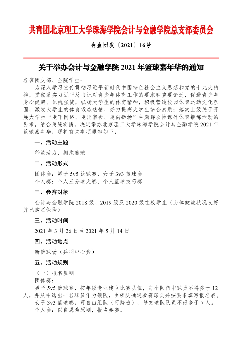 关于举办2021年篮球嘉年华的通知