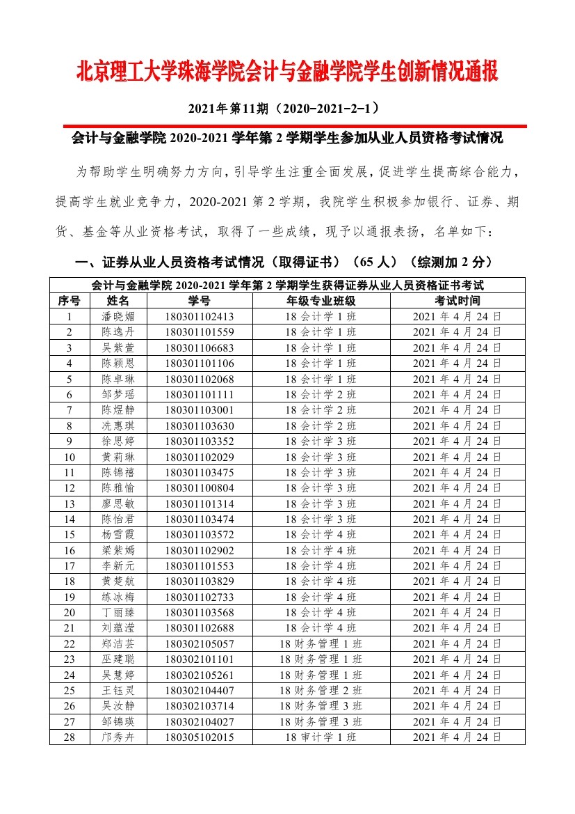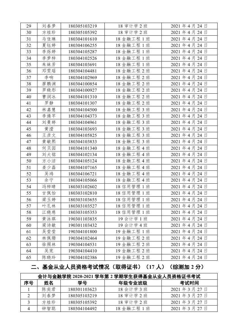 2020-2021学年第2学期员工参加从业人员资格考试情况